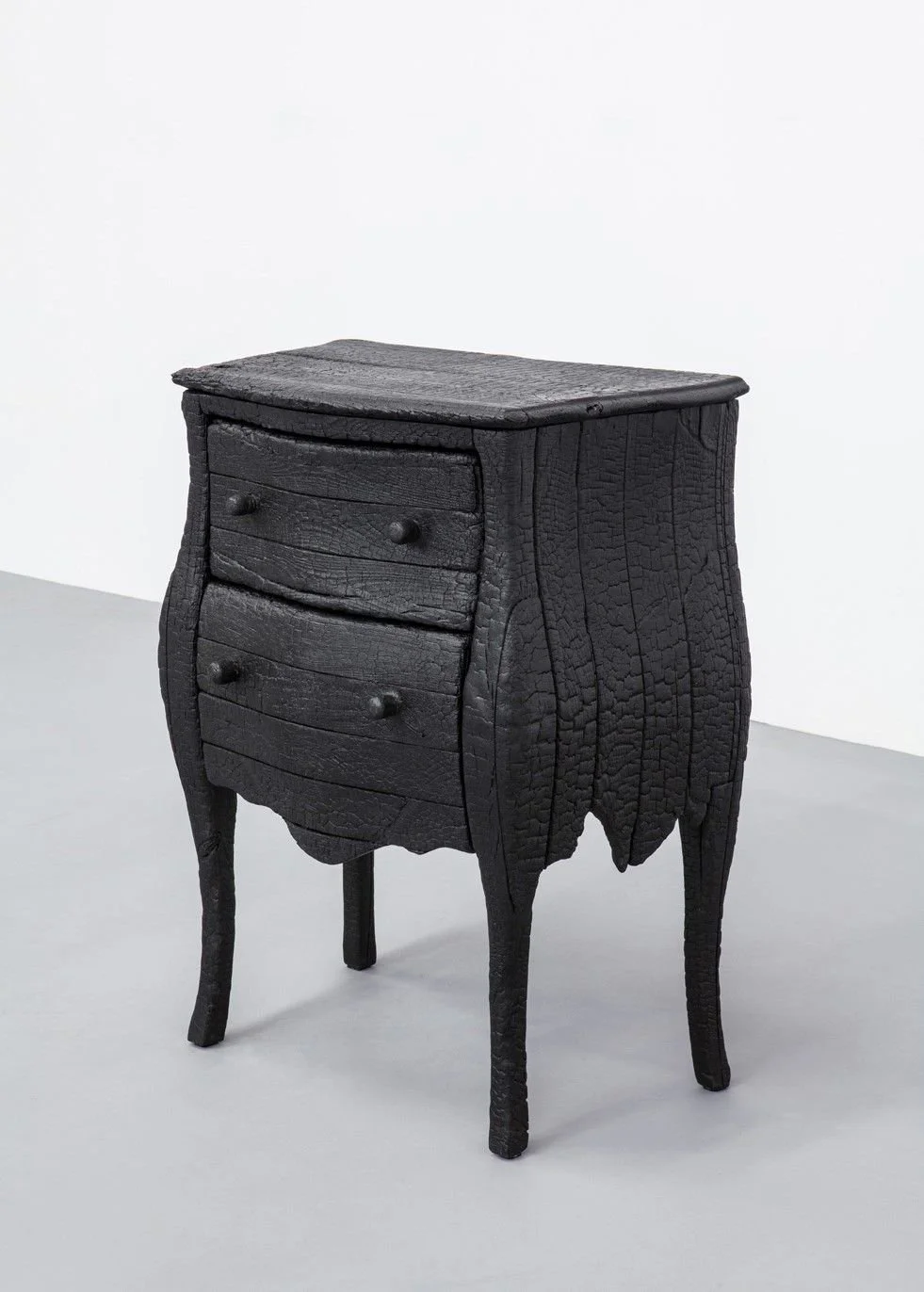 OBLONG shou sugi ban chairs. Shou Sugi Ban is a traditional Japanese wood preservation technique involving charring. The method is fire, insect, and weather-resistant, enhancing the durability of wood.